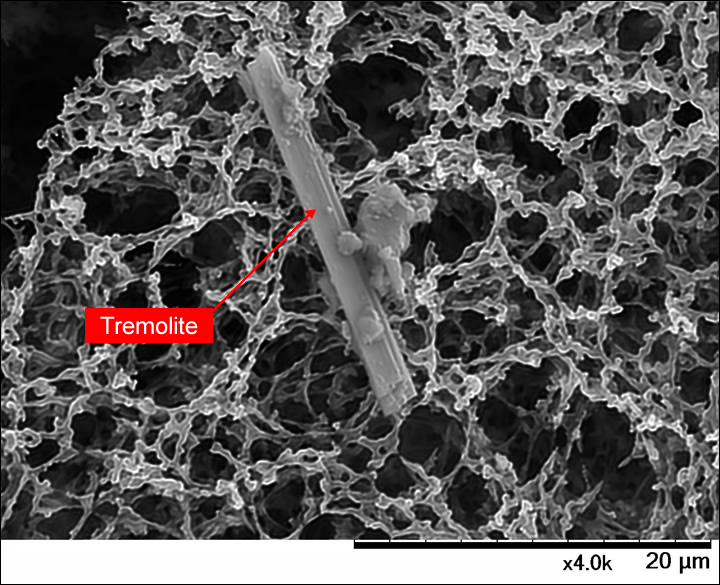 *EDX elemental mapping will reveal that Al is a contaminated element and it can be determined as tremolite.