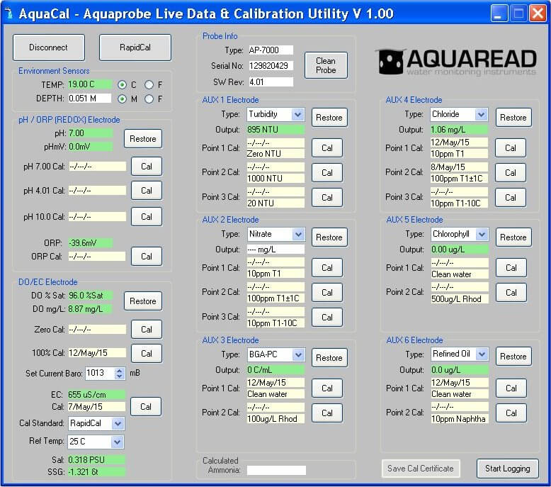 The AquaCal windows PC software