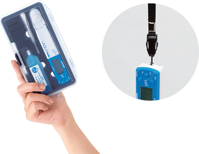 Hôp đựng nhỏ gọn chứa tất cả mọi thứ bạn cần cho phép đo của mình, bao gồm dung dịch chuẩn. Bạn có thể gắn thêm một dây đeo vào phía sau máy.