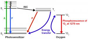 Oxy mức đơn là một dạng trạng thái có khả năng phản ứng cao, có thể được tạo ra bằng cách chiếu sáng chất nhuộm hữu cơ (được gọi là chất nhạy quang) trong điều kiện hiếu khí. Loại phản ứng này đóng một vai trò quan trọng trong nhiều quá trình oxy hóa quang hóa trong cả lĩnh vực sinh học và hóa học, và chịu trách nhiệm cho sự phân rã quang hóa của các vật liệu khác nhau hoặc tiêu diệt các tế bào ung thư trong liệu pháp quang động lực. Một cách hiệu quả để phát hiện sự có mặt của oxy mức đơn là các thí nghiệm đo độ lân quang đặc trưng ở trạng thái cân bằn hoặc thời gian phân giải của oxy mức đơn ở bước sóng khoảng 1270nm. Tuy nhiên, các thí nghiệm này khó thực hiện do cường độ lân quang khá yếu (hiệu suất lượng tử phát xạ của oxy nhóm đơn thấp). Thời gian sống lân quang của oxy mức đơn phụ thuộc vào dung môi và do đó có thể được sử dụng để thu thập thông tin về môi trường của các phân tử oxy phát ra. |