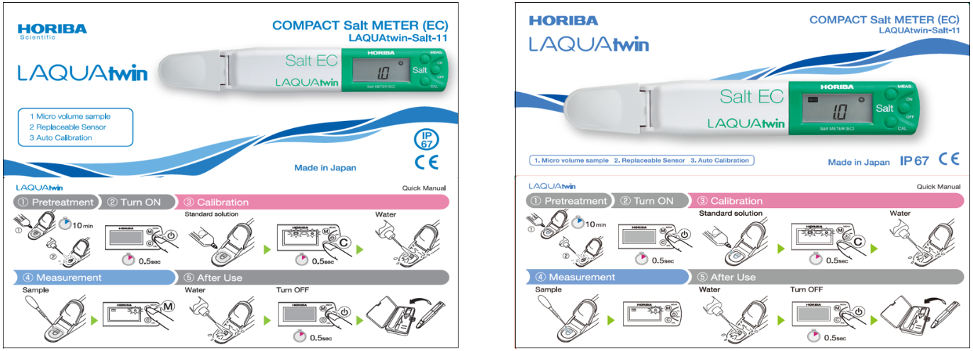 Ghi nhãn thông minh: Là một phần của các sáng kiến thân thiện với môi trường và quá trình chuyển đổi liền mạch, Horiba sẽ ngừng in trực tiếp model, số bộ phận (P/N) và số MFG trên hộp của cảm biến và bút đo ion LAQUAtwin bỏ túi. Thay vào đó, Horiba sẽ kết hợp các nhãn in vào hộp.