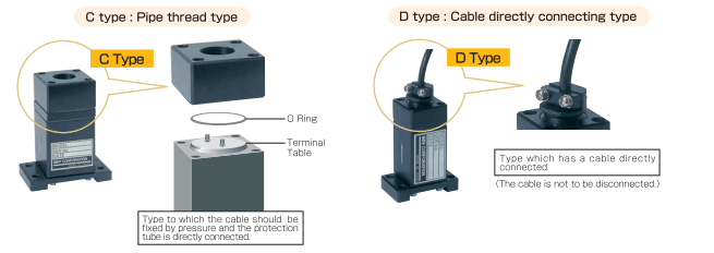 | Kết nối cáp tín hiệu nối ra | Ren nối(type C) Kẹp nối(type D) |