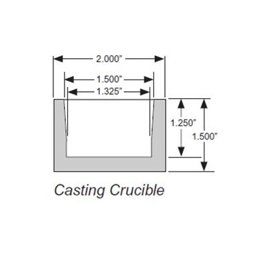 Regular purity graphite fusion crucible for casting 34mm disks. Total metallic impurities range from 10 to 100 ppm (Mg, Fe, Al, Si and Cu).