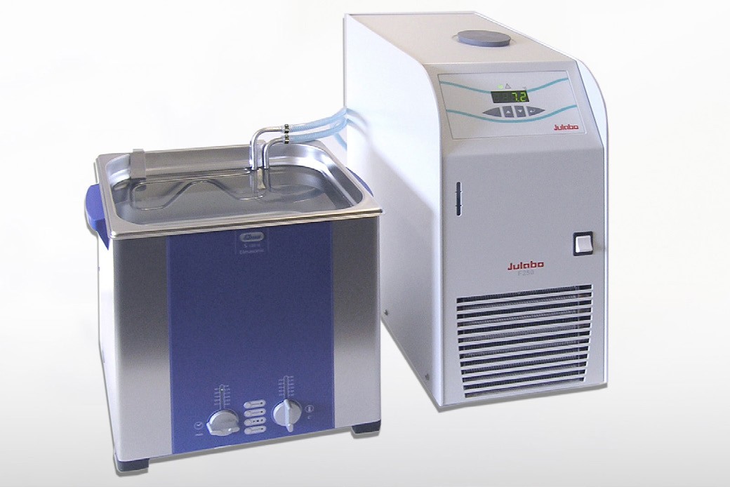 - Dành cho bể rửa siêu âm dung tích tối đa 15 lít và công suất siêu âm (hiệu dụng) lên tới 200 watt, nên sử dụng bộ điều nhiệt Julabo F250.