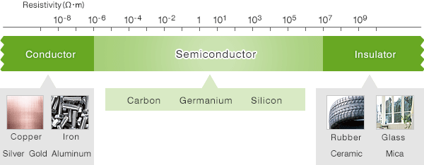 Chất bán dẫn là những chất có tính chất điện đặc biệt. Một chất cho phép dòng điện chạy qua được gọi là chất dẫn điện, và một chất không cho dòng điện chạy qua được gọi là chất cách điện. Chất bán dẫn là những chất có tính chất dẫn điện ở mức trung gian giữa chất chất dẫn điện và chất cách điện. Tính dẫn điện của một chất được đặc trưng bởi giá trị điện trở suất. Các chất dẫn điện như vàng, bạc và đồng có điện trở suất nhỏ và dễ dàng cho dòng điện chạy qua. Các chất cách điện như cao su, thủy tinh, gốm sứ có điển trở suất cao và khó cho dòng điện đi qua. Chất bán dẫn có tính chất dẫn điện ở khoảng giữa của 2 loại nói trên. Giá trị của điện trở suất có thể thay đổi theo nhiệt độ, ví dụ: với chất bán dẫn ở nhiệt độ thấp, chúng gần như không cho dòng điện đi qua, nhưng khi nhiệt độ tăng chúng lại cho dòng điện đi qua một cách dễ dàng.