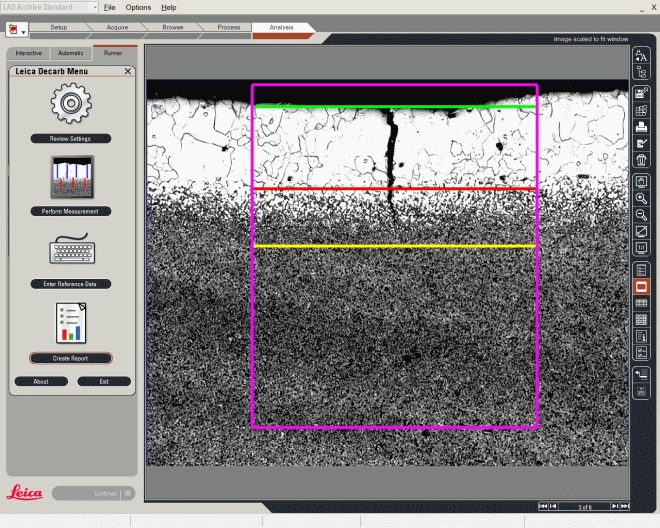 • Phân tích hình ảnh, xác định chiều sâu của quá trình khử cacbon trong thép. Các pha mang cacbon trên bề mặt mẫu được so sánh với lượng cacbon ở phần không bị tác động bên trong.