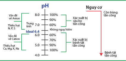 Nếu pH nhỏ nhiều hơn 0,5 so với 6,4: thêm một lượng nhỏ phân bón canxi/kali.