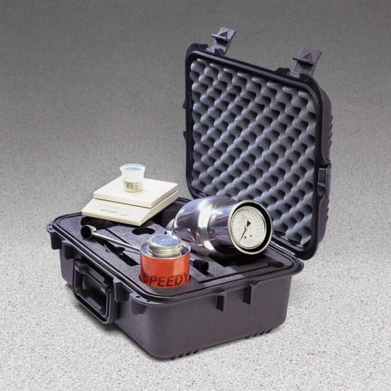 Nguyên lý hoạt động của thiết bị dựa trên phản ứng của nước với Canxi Cacbua (CaC2) tạo thành khí Axetylene và lượng khí tạo thành tỷ lệ trực tiếp với lượng nước tham gia phản ứng. Để xác định lượng khí sinh ra có thể sử dụng một áp kế tích hợp. Do đó, số chỉ của áp kế sẽ gián tiếp nói lên hàm lượng phần trăm ẩm trong mẫu. Với dải đo 0 – 20% / 0.2%, D2 small có thể kiểm tra nhanh các mẫu có trọng lượng 6 g. Cung cấp bao gồm một cân điện tử 200 g / 0.1 g và một vali đựng máy bằng nhựa.
