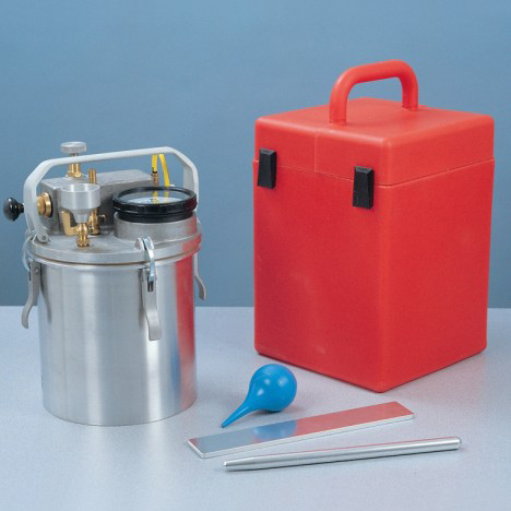 Thiết bị được thiết kế dạng nguyên khối. Hộp đựng chắc chắn, cung cấp công cụ đo lường trọng lượng chính xác. Để thuận tiện, trọng lượng bì theo gram được dán ở phía dưới. Khi được sử dụng kết hợp với toán đồ được cung cấp kèm, áp kế sẽ đo và hiển thị nhanh chóng tỉ trọng hạt và phần trăm không khí trong cốt liệu.