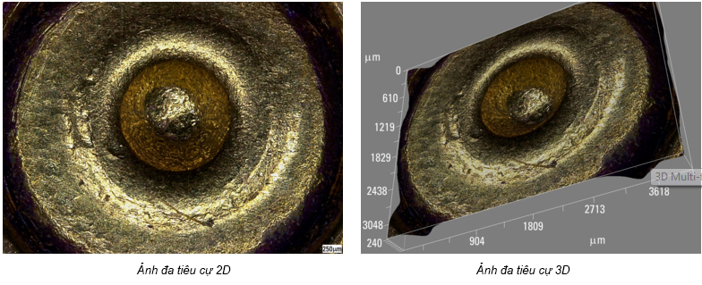 Hình ảnh đa tiêu cự của vỏ đạn đồng thể hiện rõ chốt đánh lửa ngòi nổ