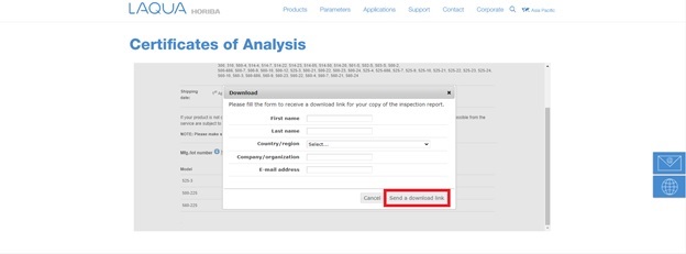 Để tải xuống COA và báo cáo kiểm thử từ trang web LAQUA, vui lòng thực hiện theo các bước dưới đây: