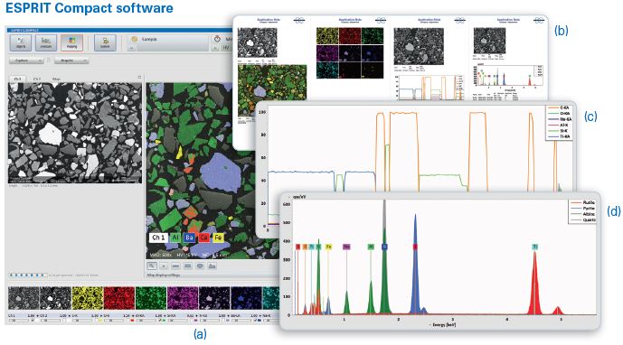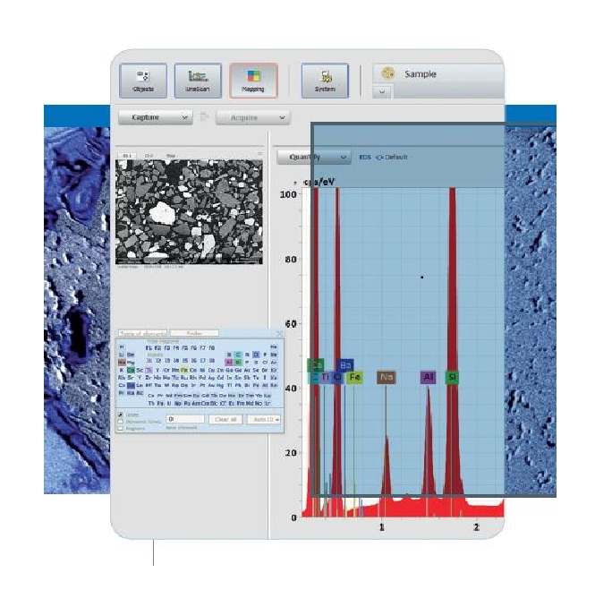 - Tùy chọn phần mềm: Mode vật thể (bao gồm điểm, hình chữ nhật, hình elip và đa giác), Quét theo đường, Hypermap, Tạo báo cáo (trích xuất ra tệp PDF và MS® Word), có thể đọc và xử lí 70 tệp QUANTAX.