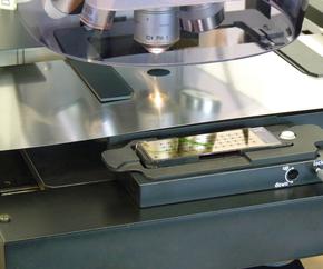 Tissue ablation with the LMD “Draw & Scan” mode enables you to collect your sample direct from a special coated, energy absorbing glass slides (DIRECTOR®) as well as from usual glass slides. In combination with the LMD “Draw & Cut” mode, the DIRECTOR® slides allow a fast and accurate sample collection with low laser power. |