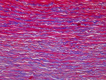 Specimens for brightfield microscopy commonly have to be stained e.g. with Hämatoxylin-Eosin (H&E). This is a part on an aorta (20x).