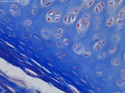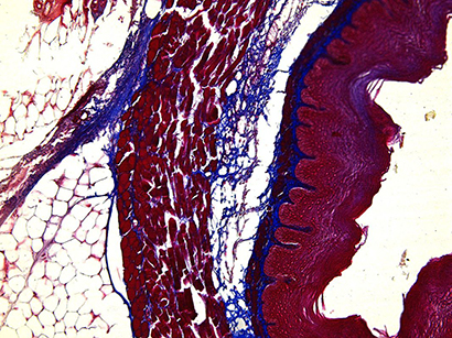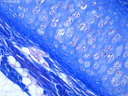 Azan staining of the ear with higher magnification (40x). Brightfield