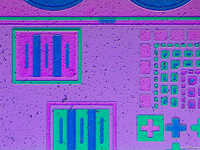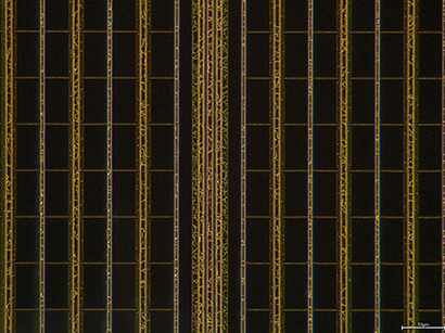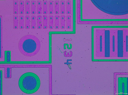 Part of a wafer captured with open coax and enhanced relief contrast, mag. 750x