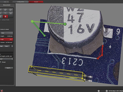 LAS X screenshot of a 3D measurement of a capacitor on a PCB