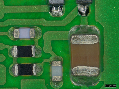 Tile scan of a PCB part with extended depth of field (EDOF) function in LAS X