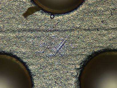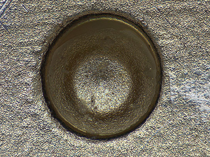 Multifocus image of a blind microvia in a PCB, recorded at mag. 650x