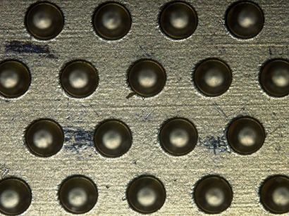 Through hole vias in a PCB inspected with 14° tilt, ring light illumination and backlight adapter