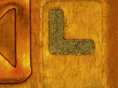 Zoom-in on Au-plated Bondpad, Automotive electronics, mag. 360x