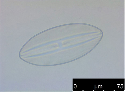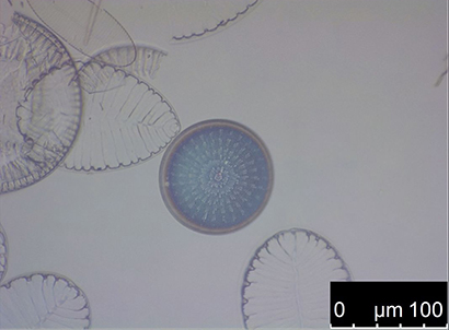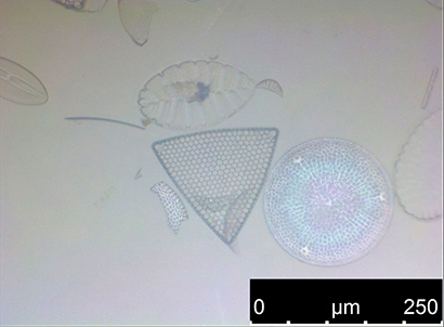 Fixed maritime diatoms on a glass slide.