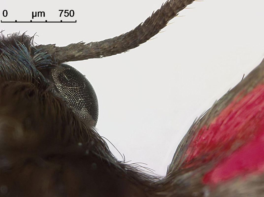 Zoom-in on the compound eye of cinnabar moth