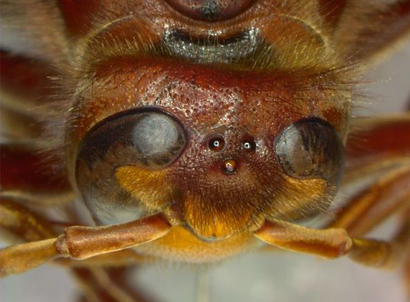 Head of a hornet in tilted view