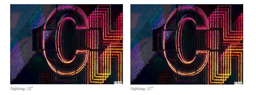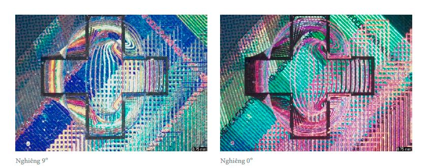 Hình ảnh của hình ảnh ba chiều bảo mật trên giấy tùy thân của một người Thụy Điển ghi lại bằng cách tăng độ nghiêng đầu quan sát của DVM6, được thể hiện trong bảng phía dưới và video bên dưới.