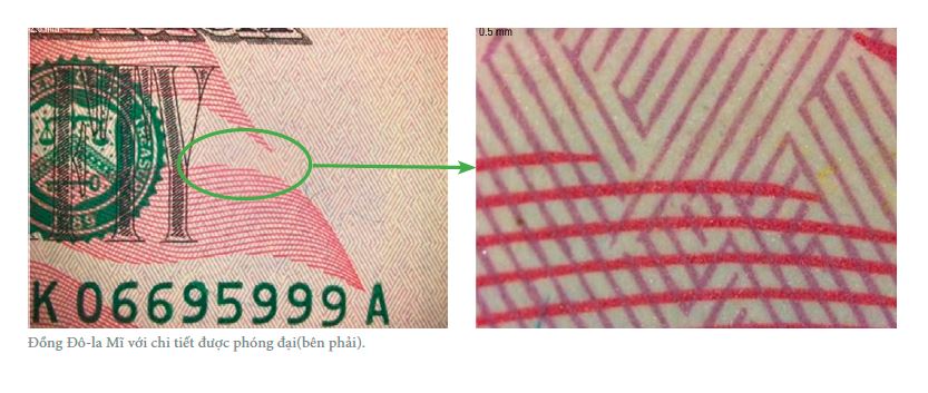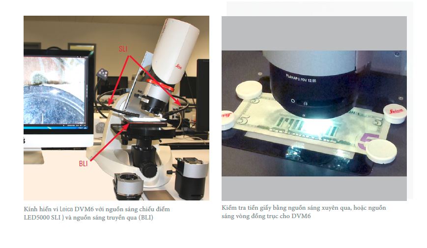 Khi phân tích tiền, các chuyên gia hình sự có thể thay đổi nhanh chóng từ quan sát tổng quan tới từng chi tiết nhỏ bằng thấu kính của DVM6. Bên dưới là hình ảnh tổng quan và phóng đại thu được những chi tiết rất nhỏ và rõ nét qua Leica DVM6.
