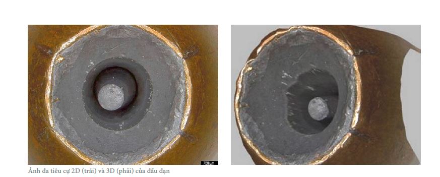 Có thể chụp ảnh của cả viên đạn với DVM6 bằng ứng dụng ghép ảnh theo phương XY và mở rộng chiều sâu của trường (EDOF), giúp việc quan sát tổng quan dễ dàng và nhanh chóng hơn với chất lượng ảnh cao. Hình ảnh của một viên đạn đã bắn chụp được qua DVM6 (xem hình bên dưới):