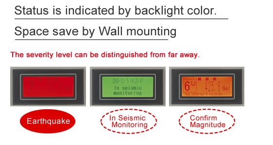 | Màn hình phát địa chấn | Thời gian phát địa chấn, gia tốc tối đa, thang cường độ địa chấn, báo động |