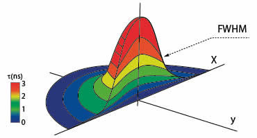 Lifetime distribution of fluorophores in the effectiv focal spot of aSTED CW microscope. Long-living states (red) are located at the center whereas short living ones (blue) at the periphery. Contact Us