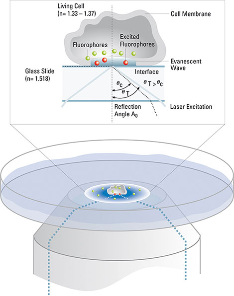 Trong khoa học đời sống, mỗi mẫu phẩm đều là duy nhất. Laser TIRF xác định hướng của điện từ trường tắt dần để thu được nhiều thông tin nhất từ mẫu. Điều chỉnh tự động các bước sóng laser khác nhau (405, 488, 561, 635nm) tạo điều kiện cho việc thiết lập hệ thống cho các mẫu đa sắc. |