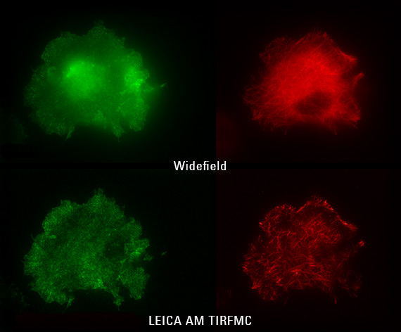 Đối với các quá trình động ở bề mặt tế bào, kính hiển vi TIRF (Total Reflection huỳnh quang nội bộ) là phương pháp được lựa chọn để hình dung các sự kiện của tế bào với nhiễu huỳnh quang tối thiểu từ ánh sáng ngoài tiêu cự. Với hệ thống Leica DMi8 TIRF, bạn có thể quan sát các mẫu với độ rõ, kiểm soát và độ tin cậy vượt trội. Nhờ căn chỉnh tự động và phát hiện độ sâu điện từ trường tắt dần đến các phân tích phần mềm mạnh mẽ, với kính hiển vi TIRF, bạn có thể hình dung và nghiên cứu các tương tác phức tạp, nhiều màu trong các tế bào sống với độ phân giải cao.