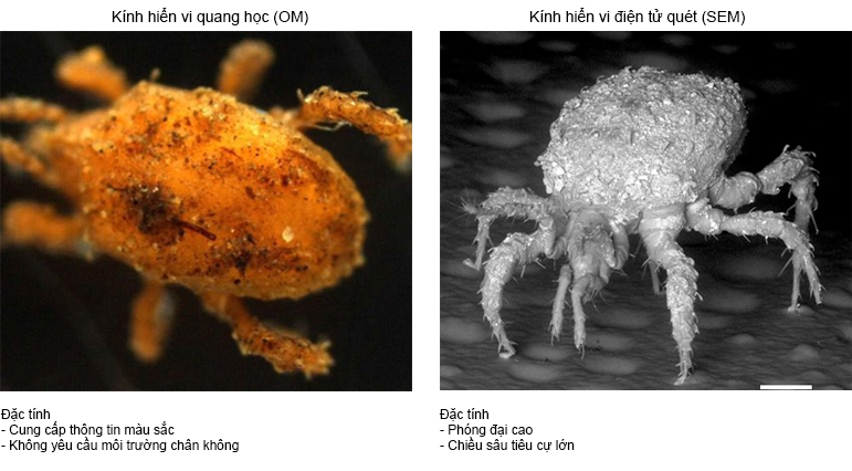 ● So sánh kính hiển vi điện tử quét (SEM) với kính hiển vi quang học (OM)