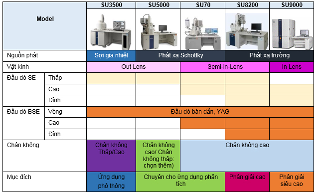 ● Dải sản phẩm kính hiển vi điện tử quét của HITACHI