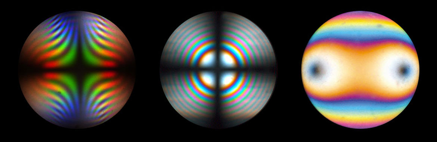 Conoscopic image of Brookit, TiO2, with strong dispersion colors