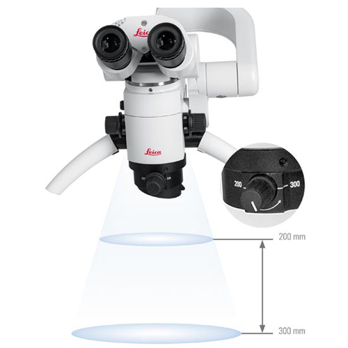 The optional Leica M320 MultiFoc Objective enables you to adjust working distance from 200 mm to 300 mm with a simple turn of the adjustment knob.