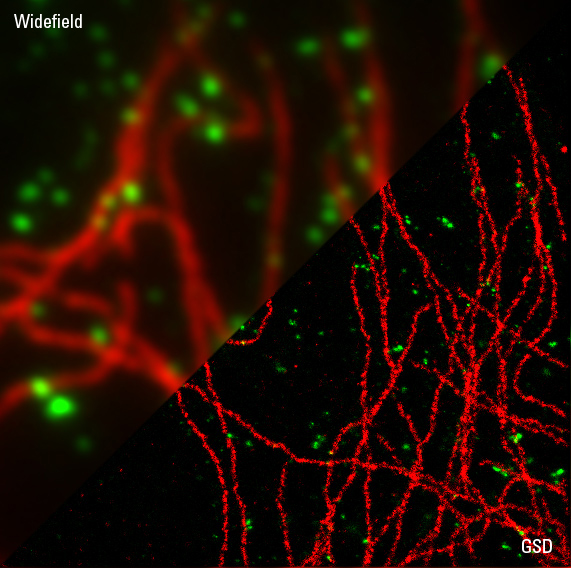 Việc hiển thị chính xác vị trí 3D của phân tử và cấu trúc rất cần thiết trong việc hiểu rõ hơn về các quy trình sinh học tế bào. Kính hiển vi huỳnh quang Leica SR GSD 3D dựa trên công nghệ GSD hoặc dSTORM giúp tạo ra các hình ảnh 2D và 3D độ phân giải siêu cao – với độ chính xác, lặp lại cao nhất và có độ phân giải khả kiến tối đa trong kính hiển vi trường ảnh rộng. Kính hiển vi huỳnh quang Leica SR GSD 3D dựa trên hệ thống tự động toàn bộ TIRF.