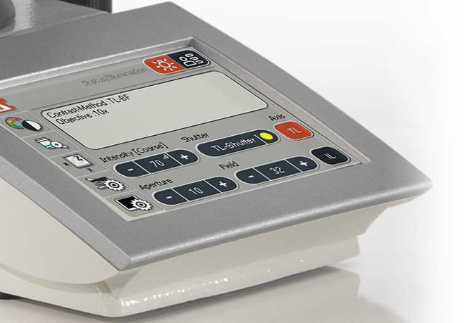 Thao tác thoải mái và nhanh chóng với Leica DM4 M: Một màn hình hiển thị sắp xếp rõ ràng và dễ dàng tìm thấy các cài đặt kính hiển vi trong nháy mắt. Có sáu phím chức năng, rất đơn giản để truy cập các chức năng thường xuyên được sử dụng - mà không cần phải lục lại từ mẫu.