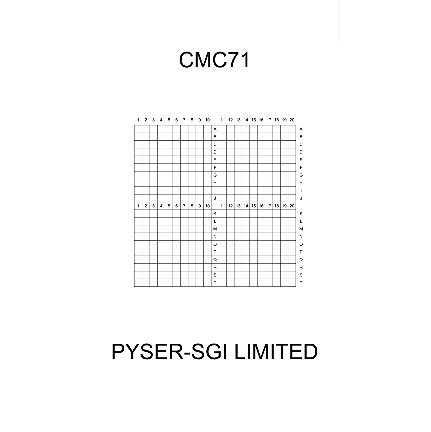 Lưới 20 x 20 mắt lưới  hình vuông 0.5 mm, được đánh số 1 - 20 dọc theo cạnh trên, từ A - T ở cạnh bên và trên đường tâm.