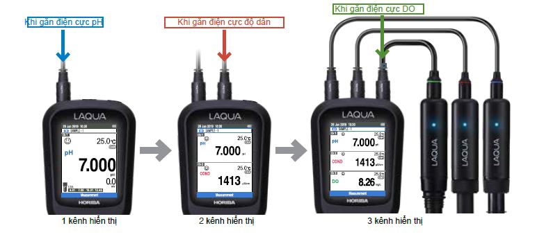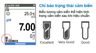Đèn LED màu xanh trên đầu điện cực nhấp nháy cho đến khi kết quả được ổn định. | ||||