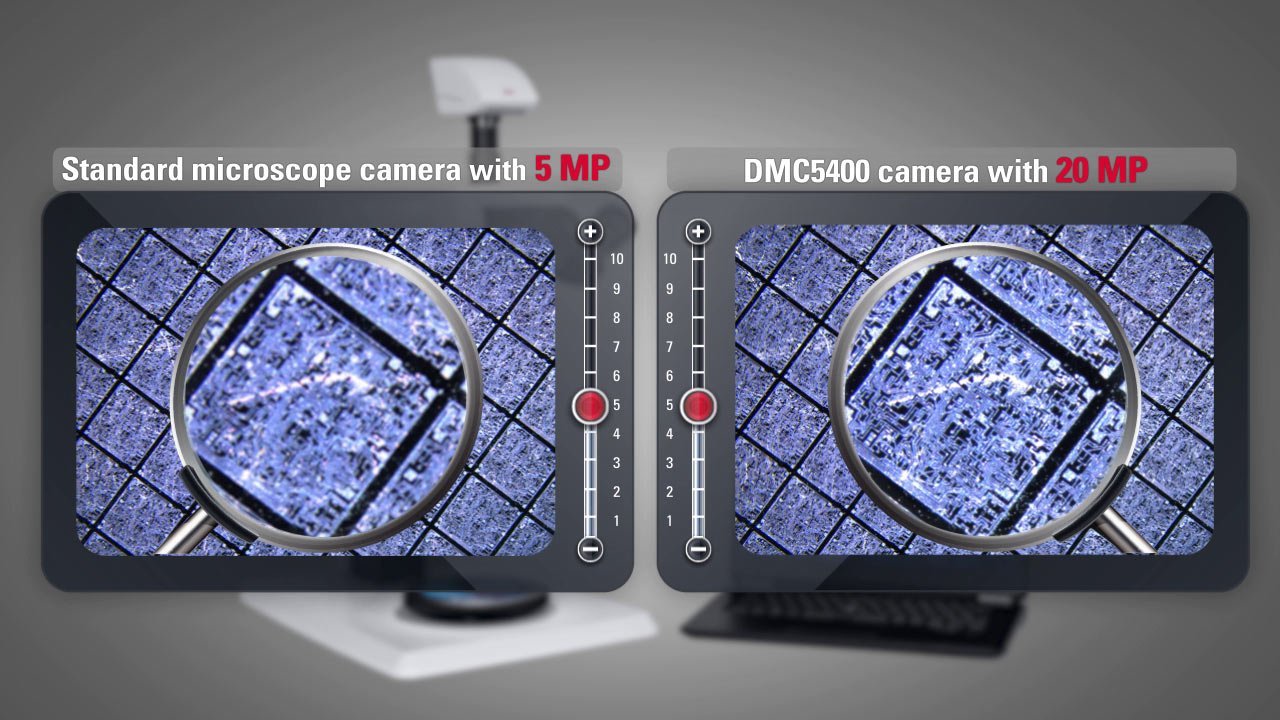 Trải nghiệm sức mạnh về độ phân giải cao của camera kính hiển vi mới của Leica. Bộ cảm biến 20 MP có khả năng chụp và cung cấp hình ảnh chi tiết hơn so với các camera tiêu chuẩn độ phân giải 5 MP - một lợi thế đặc biệt cho các ứng dụng độ phóng đại thấp.