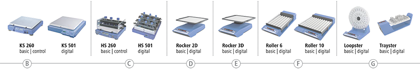 | 5 – 80 rpm | Rocker 2D basic | Sử dụng để hòa trộn đồng nhất trong bình tam giác, bình nuôi cấy, đĩa Petri và ống nghiệm |