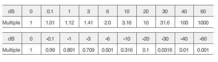 Giờ chúng ta có thể sử dụng phép cộng thay cho phép nhân bằng cách sử dụng dB. Hay nói cách khác sử dụng dB rất dễ để tính toán. Dưới đây là bảng chuyển đổi giữa dB và bội số của dB.