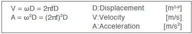 Có bốn đơn vị quan trọng, lực (N) gia tốc (m/s2) tốc độ (m/s) và độ dịch chuyển (biên độ) (mm đỉnh tới đỉnh)