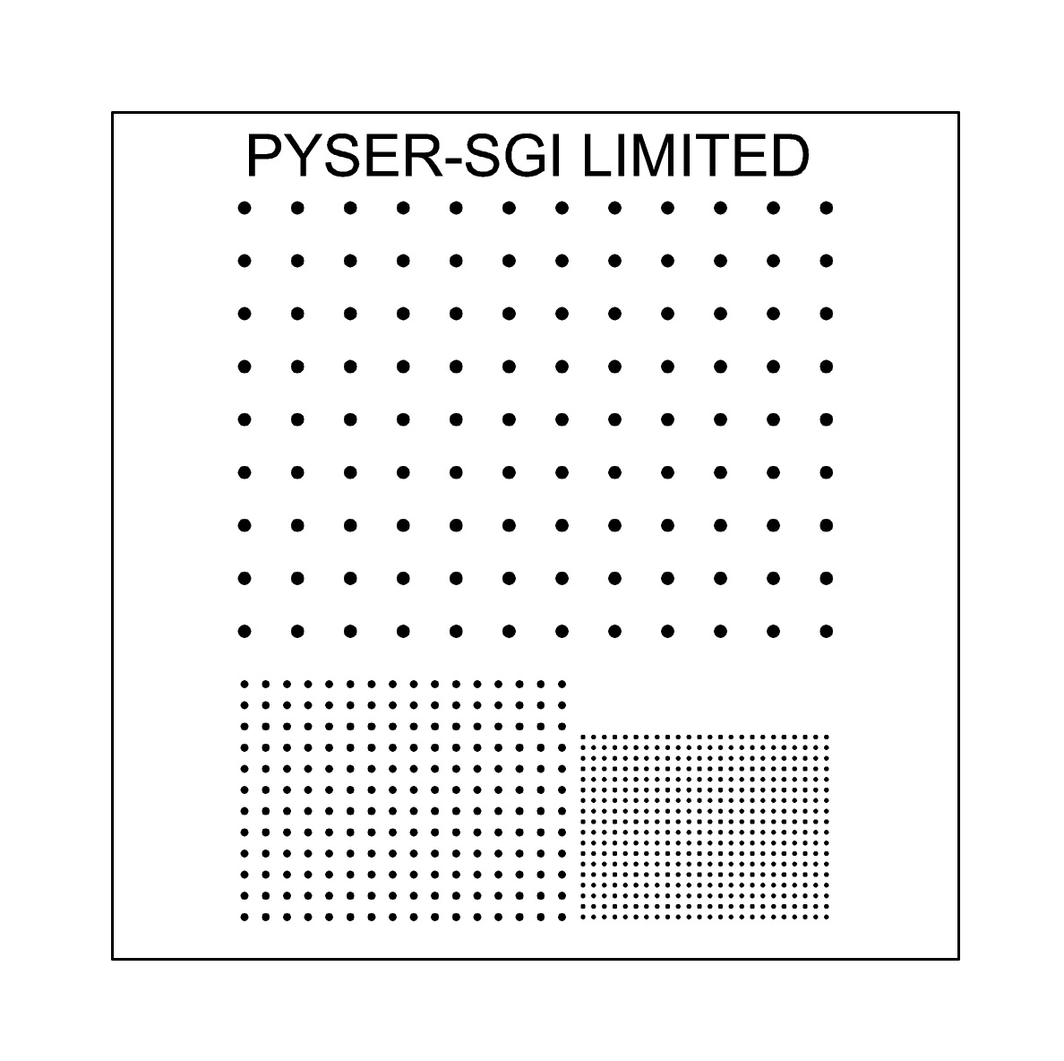Ma trận điểm dạng lưới, 3 vùng ảnh, ma trận 12 x 9 điểm đường kính 1mm, khoảng cách 5mm, ma trận 16 x 12 điểm đường kính 0.5mm, khoảng cách 2mm, ma trận 24 x 18 điểm đường kính 0.2 mm, khoảng cách 1mm. |