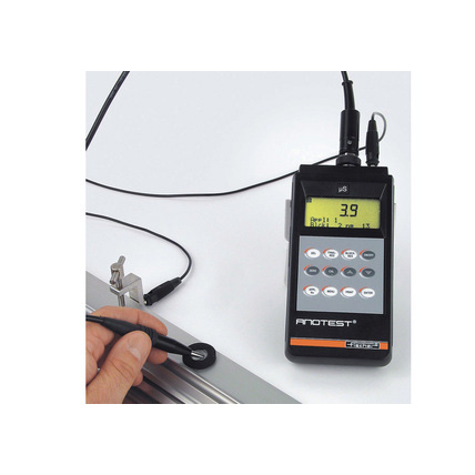 The hand-held sealing quality tester measures the admittance (Y) of anodic oxide films according DIN EN ISO 12373-5 and ASTM 457-67. Measuring range 3 – 200 µS, with test cell 13 mm diameter