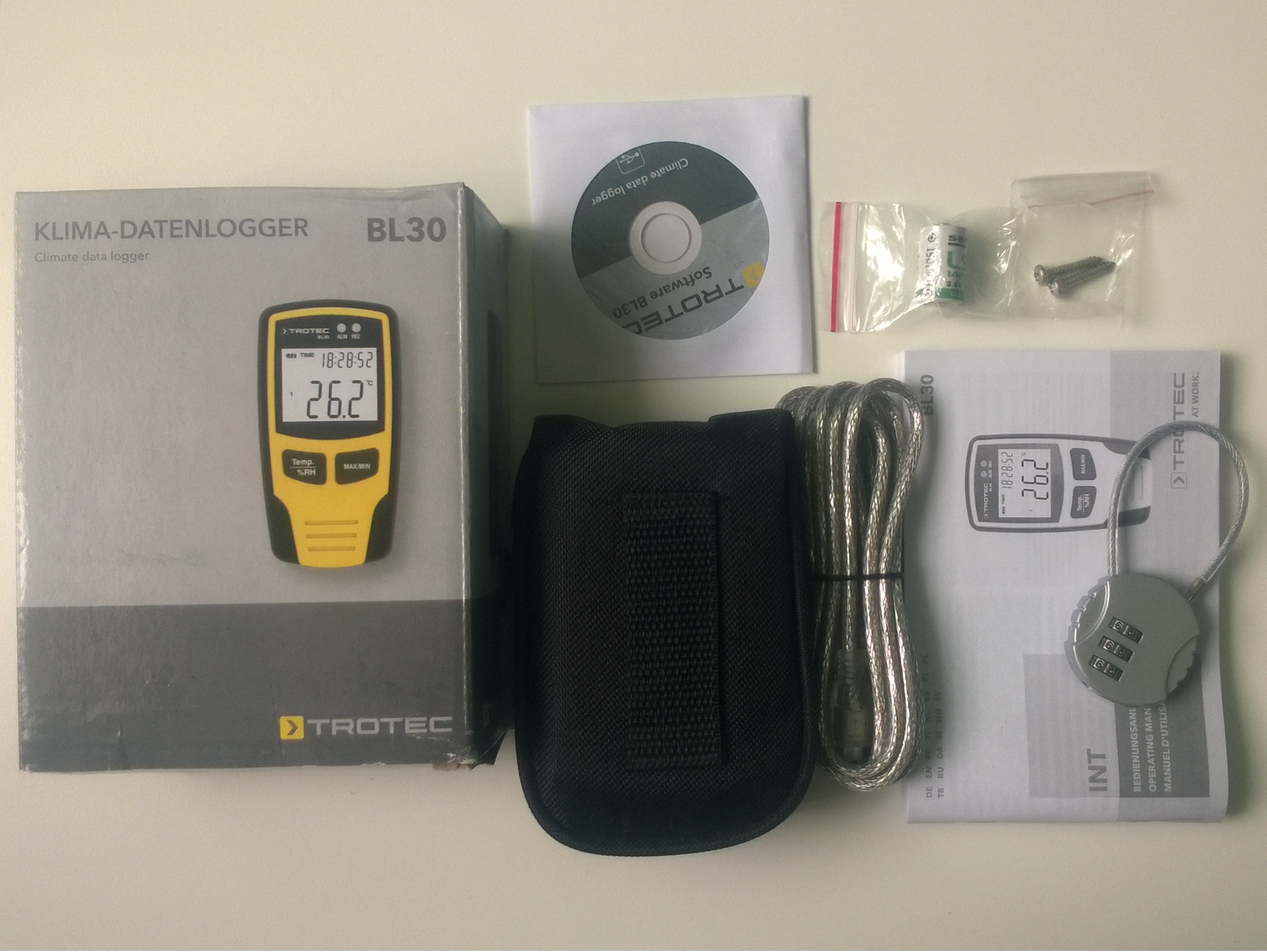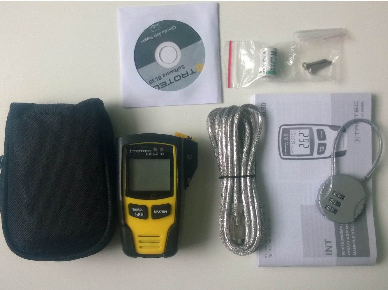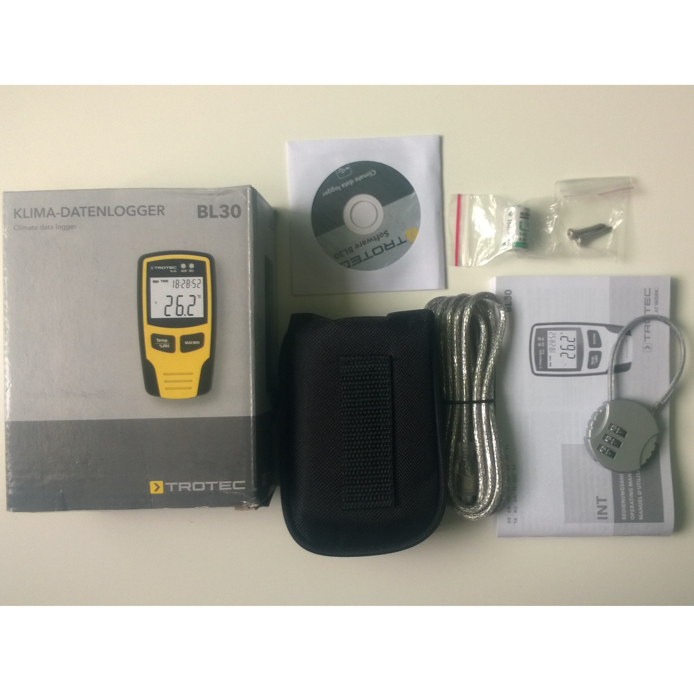 Trotec BL30 là thiết bị nhỏ gọn dùng để đo và ghi lại các giá trị nhiệt độ và độ ẩm một cách thường trực tại nơi ở, nơi làm việc cũng như kho hàng. Được cung cấp cùng với một giá gắn tường để theo dõi khí hậu tại một địa điểm nào đó một cách lâu dài.